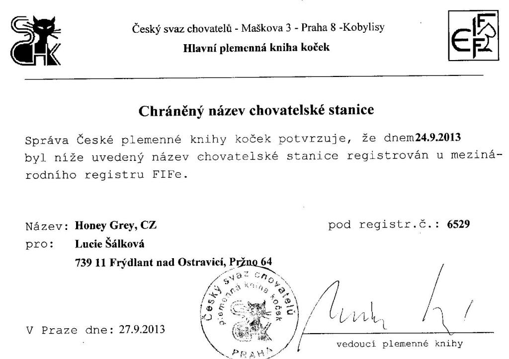 Chovatelská stanice: HONEY GREY, CZ
